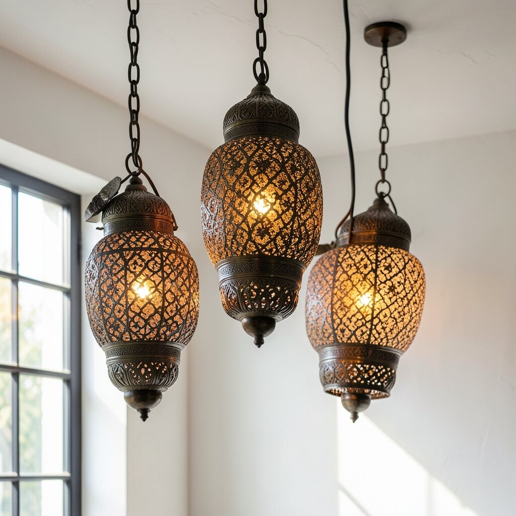 Moroccan lamps bring exotic flair and intricate design. They often feature detailed metalwork and rich colors.