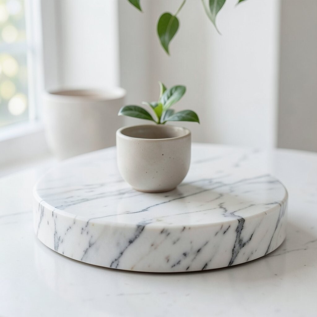 Choose a tray that enhances the marble’s natural patterns. You can add candles, small plants, or decorative items to the tray.
