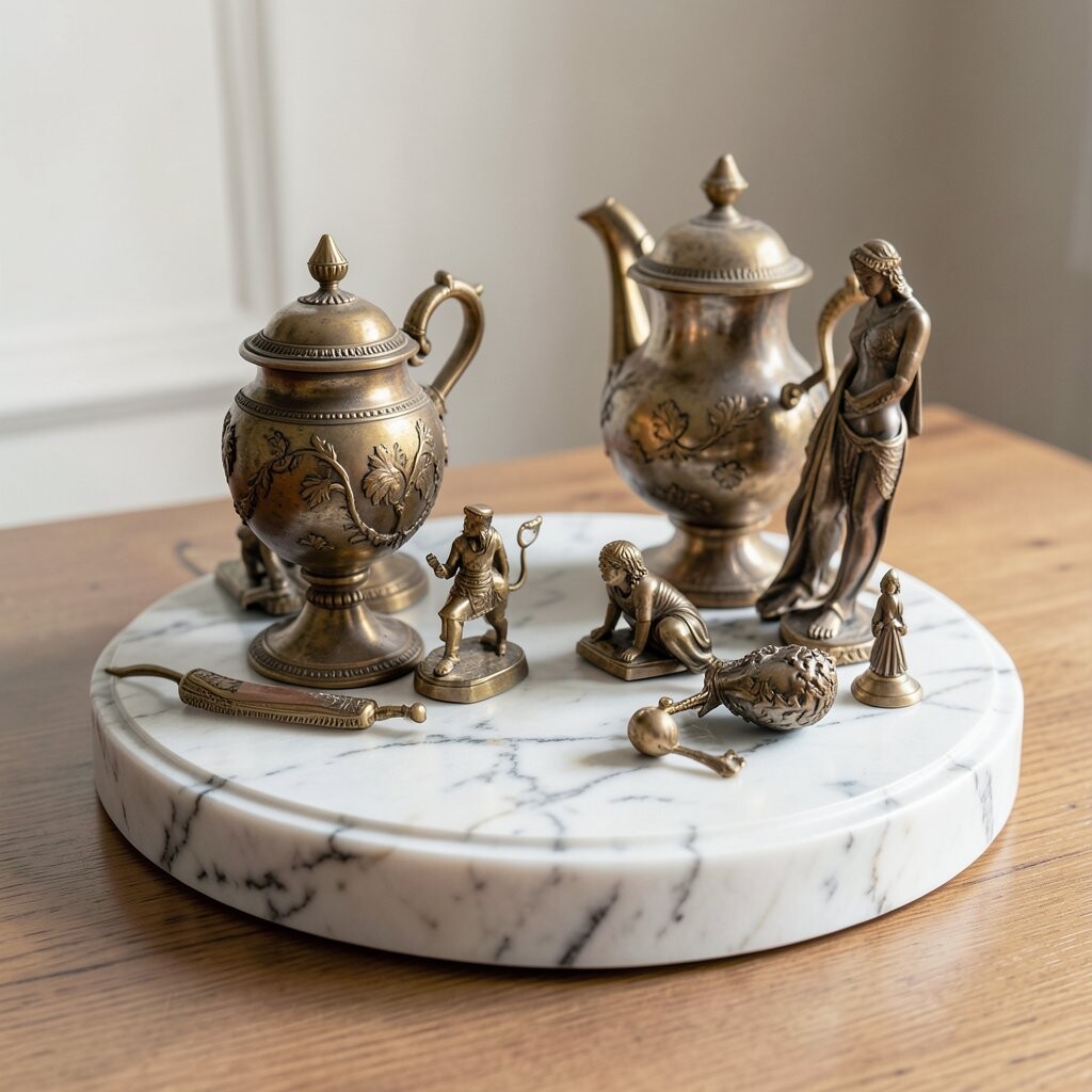 Display a vintage or antique item on your marble base for a touch of history and character. It’s a unique way to showcase your love for the past.