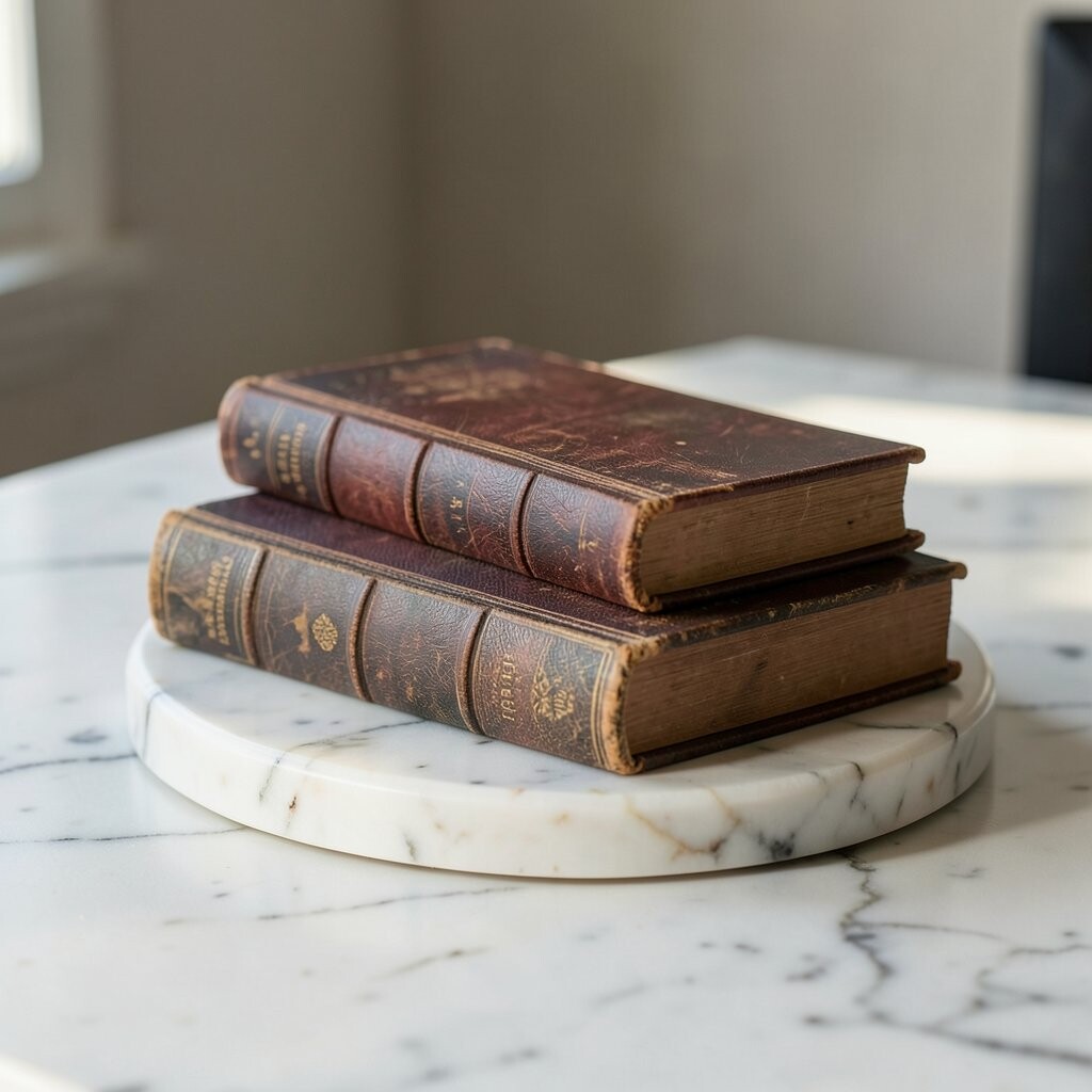 Display a stack of vintage books on your marble base for a nostalgic touch. It’s a charming way to combine history and style.