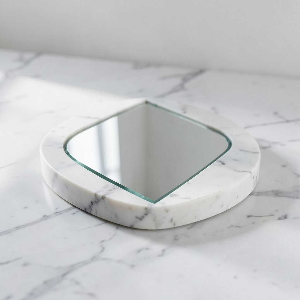 Place a small mirror on your marble base to reflect light and space. It’s a clever way to make your room feel bigger and brighter.
