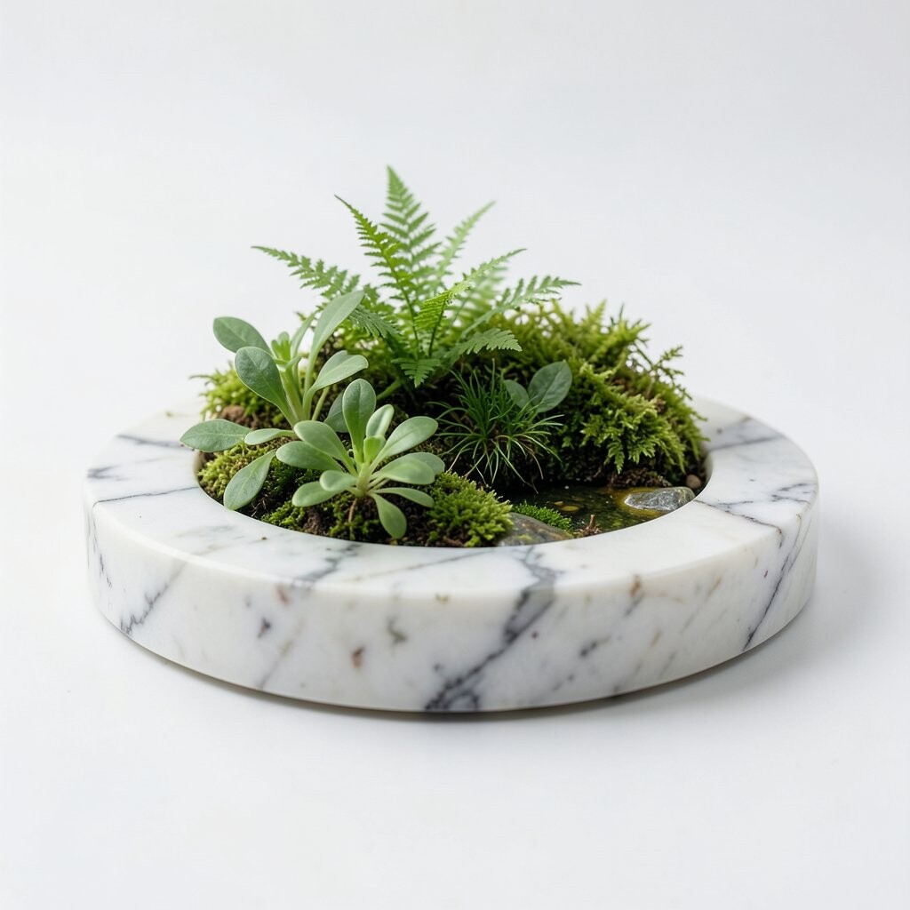 Place a small potted plant on your marble base for a touch of greenery. Plants and marble create a harmonious and refreshing look.
