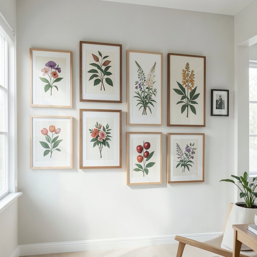 Botanical prints are easy to find and often inexpensive. They look great in simple wooden frames that enhance their natural appeal. Mixing different plants adds variety and interest. These prints can make your wall feel like a mini indoor garden.
