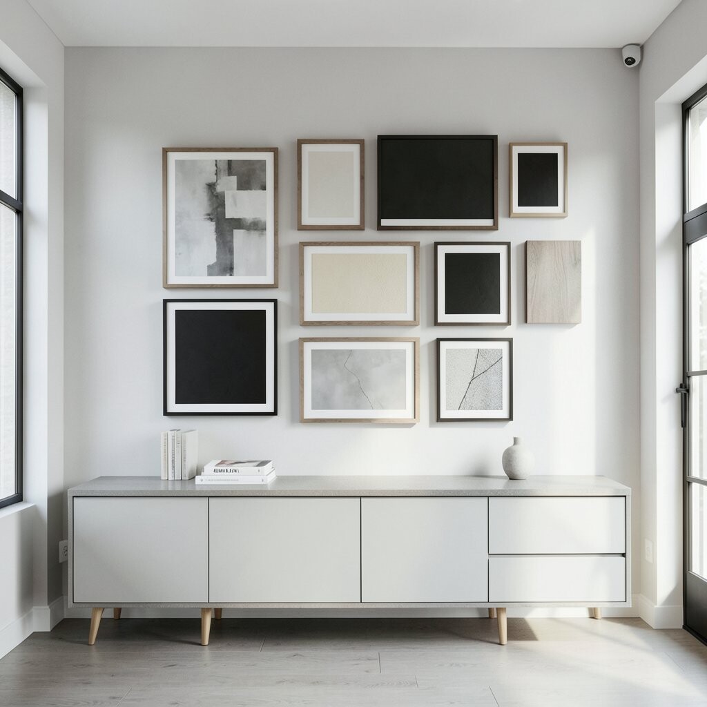 Mixing textures adds an intriguing layer to your gallery wall. Use materials like wood, metal, and fabric. These different textures engage the senses, making your wall more dynamic. It’s a clever way to add complexity and richness to your design.