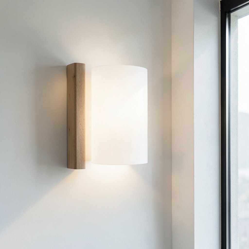 Embrace the beauty of simplicity with this Scandinavian sconce. Its natural wood and clean lines create a calm atmosphere.