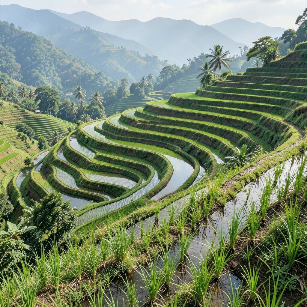 Rice terraces offer stunning, layered landscapes that change with the seasons. These scenes are perfect for capturing the harmony between nature and agriculture.