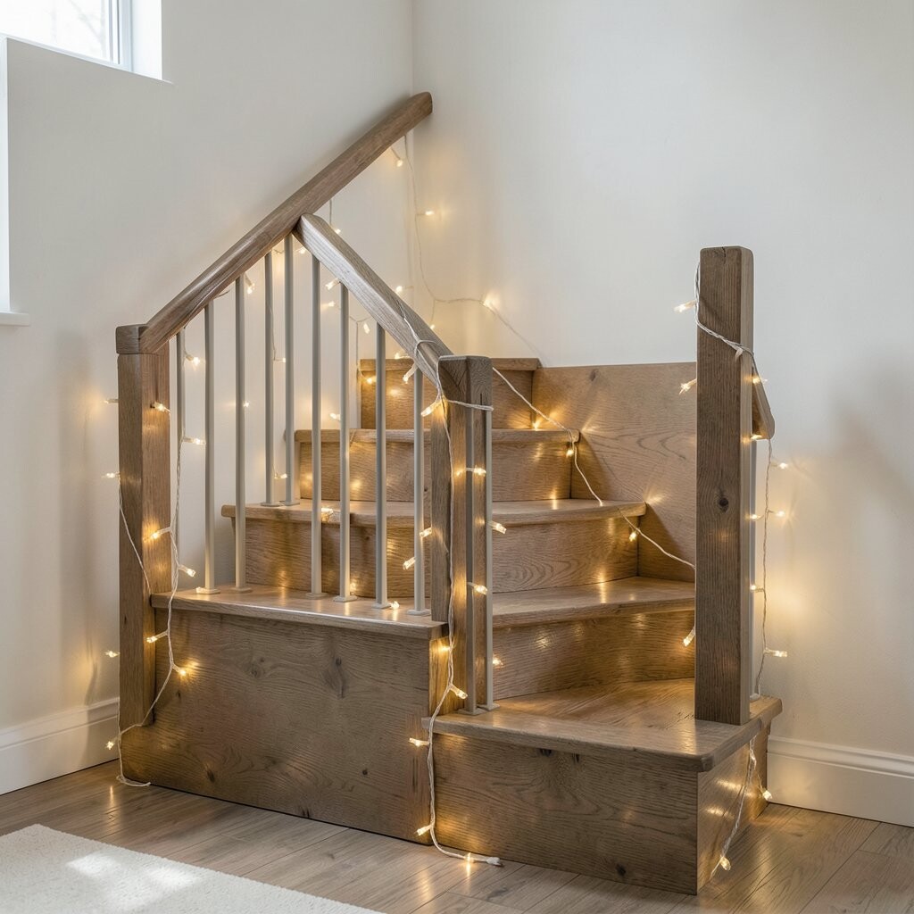 Line the railing or steps with lights for a safe, subtle glow. This idea is perfect for homes with lots of stairs.