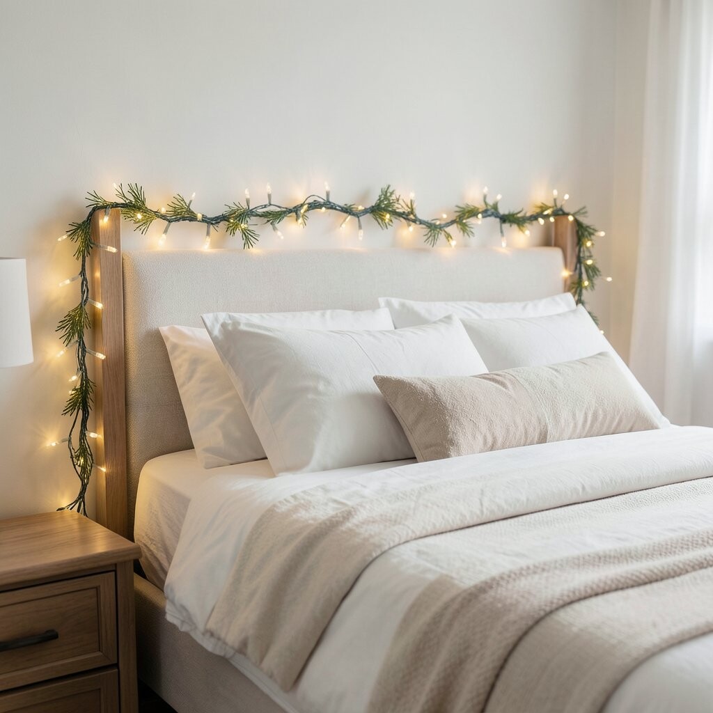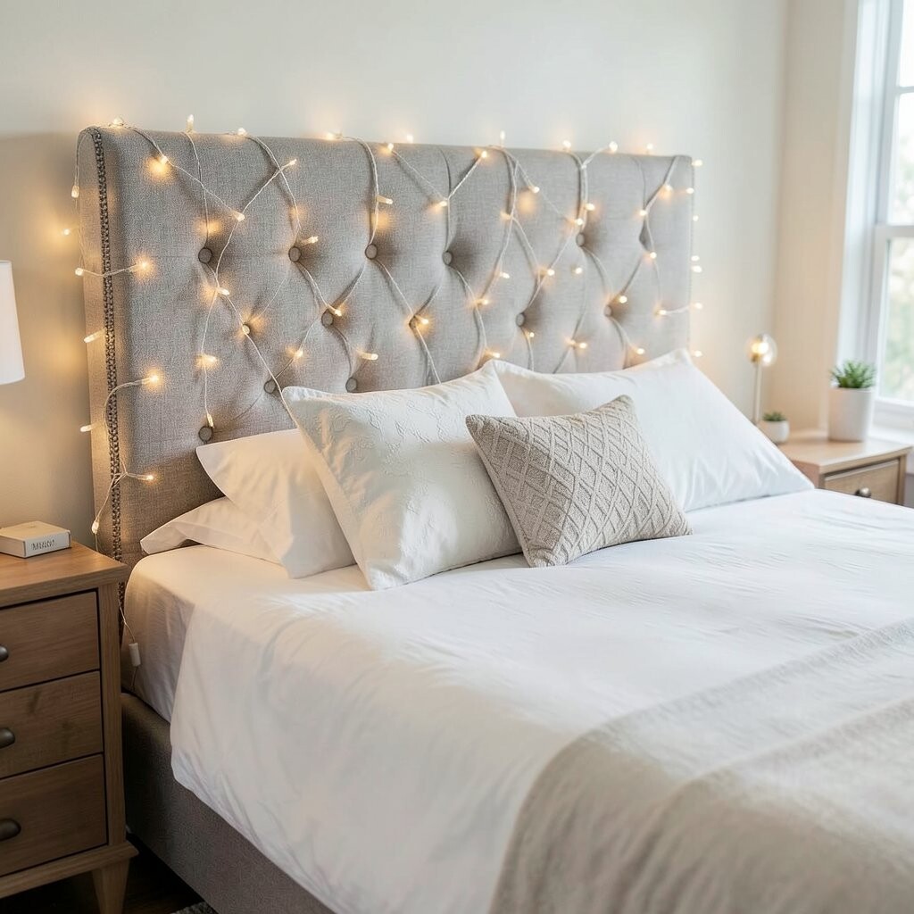 Add a garland of twinkle lights to your headboard for a soft glow. It’s like sleeping under a blanket of stars.