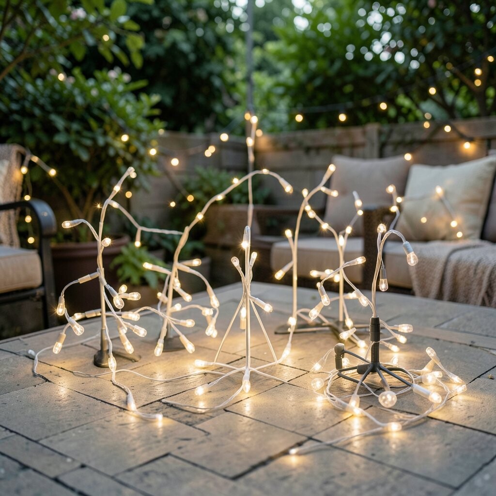 String lights around trees, fences, or pergolas for a warm, inviting atmosphere. Perfect for evening gatherings or quiet nights.