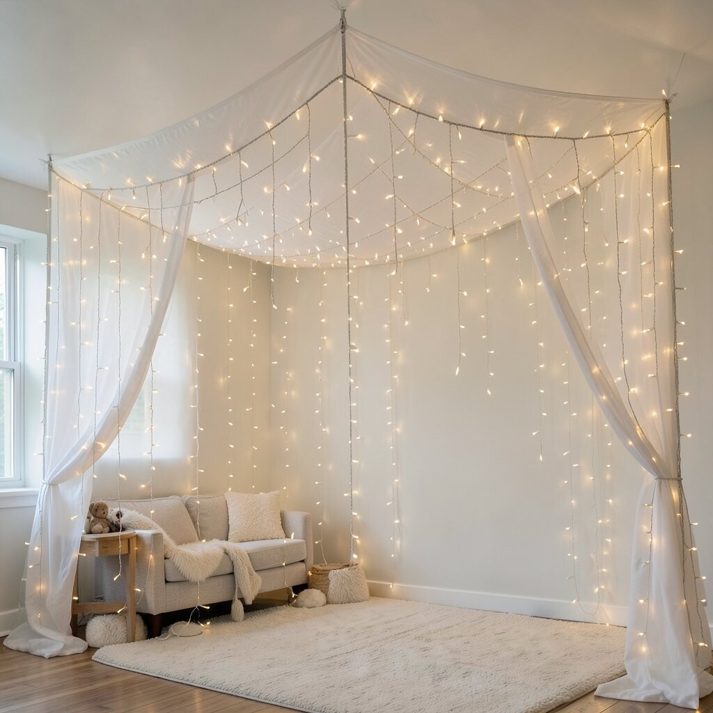 Use sheer fabric to add an ethereal effect. This setup is perfect for kids’ rooms or anyone who loves a bit of magic.
