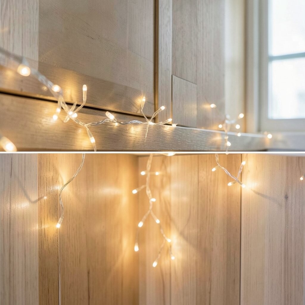 Brighten your kitchen with twinkle lights under the cabinets. It’s like having a bit of magic while you cook.