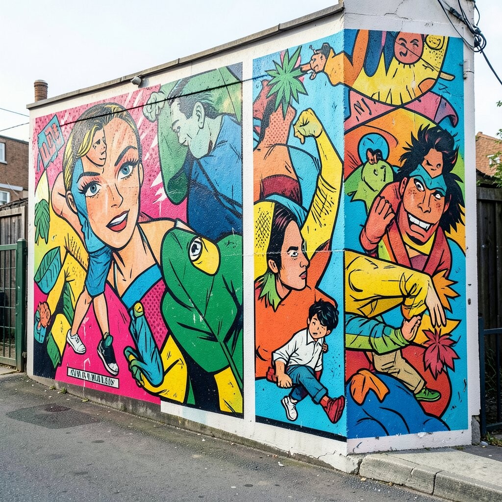 This mural is perfect for comic book fans and those who love retro culture. It adds a playful and nostalgic touch to your decor.