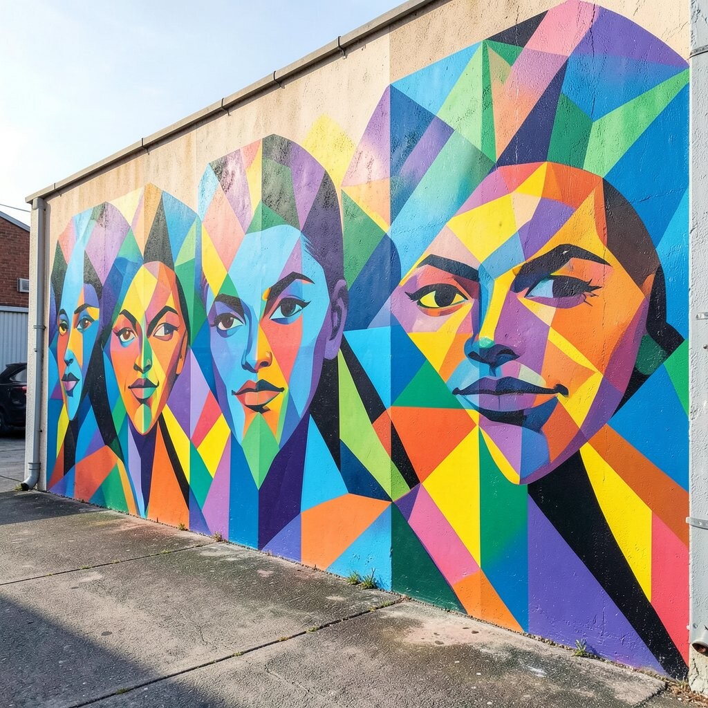 Explore bold shapes and patterns with a mural that highlights geometric designs. It’s a dynamic addition to any modern space.