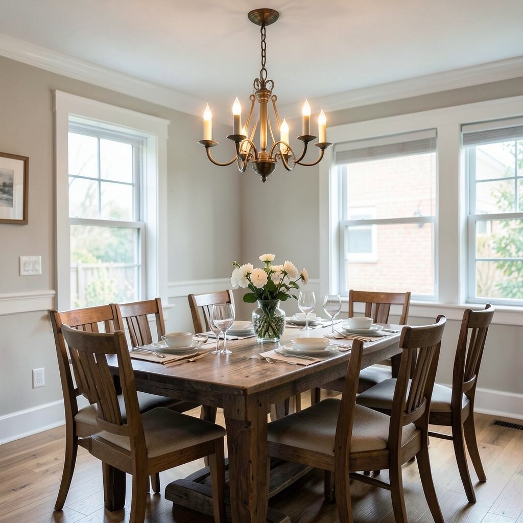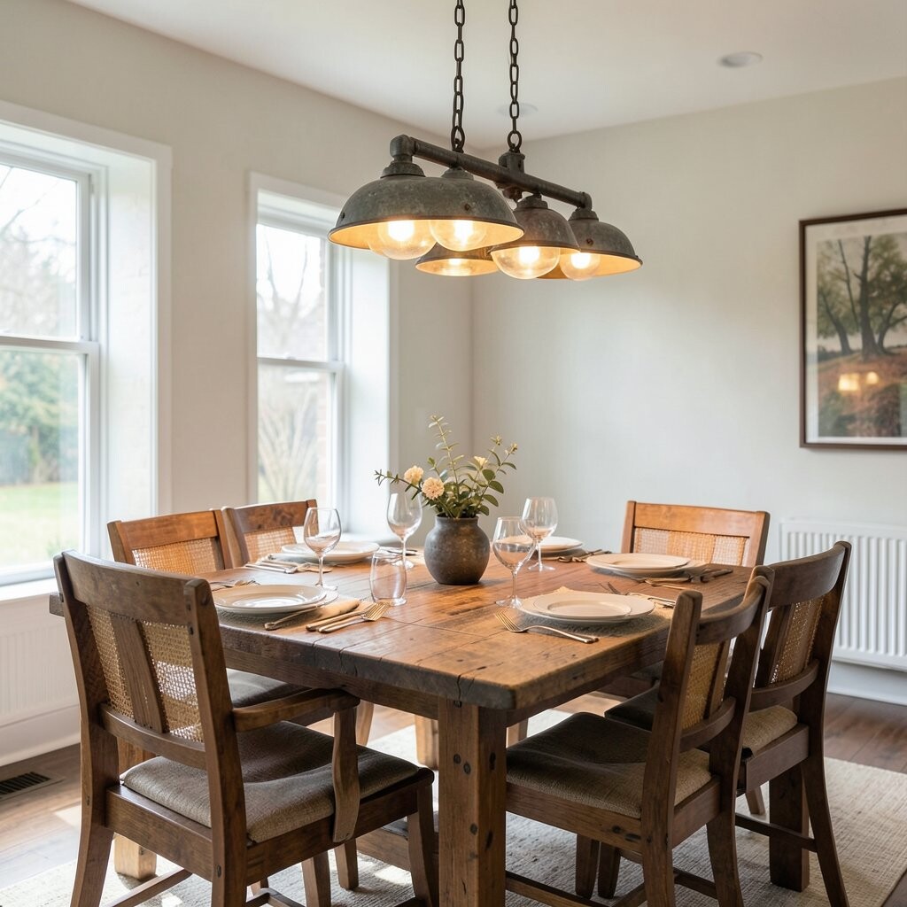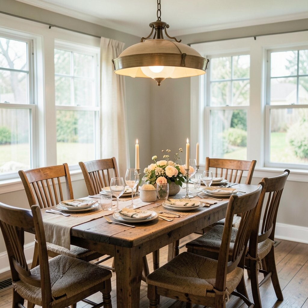 Rustic sconces add a cozy, farmhouse feel to your dining room. They are perfect for creating a warm and welcoming atmosphere.