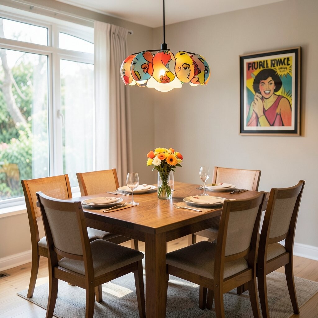 Retro pop art sconces bring a playful, colorful vibe to your dining room. Their bold designs and vibrant colors are eye-catching.