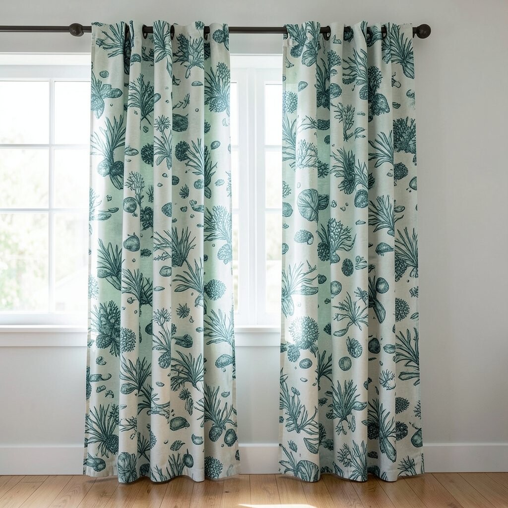 Flowy seafoam print curtains can make your windows look like framed art. They bring in light while adding a touch of elegance.