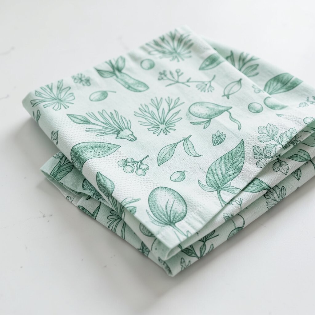 Seafoam print kitchen towels add a fresh touch to your cooking space. They’re both practical and pretty.