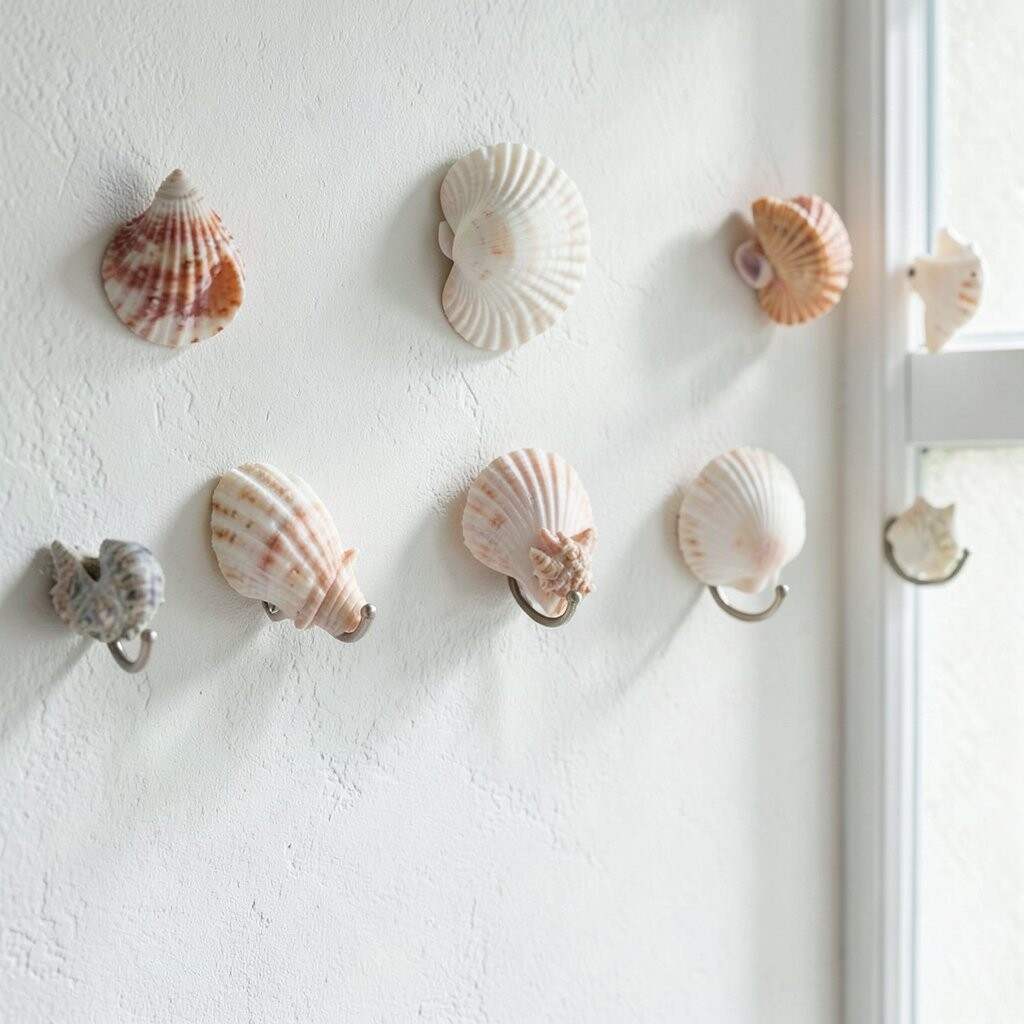 Wall hooks embellished with seashells offer both function and style. They are perfect for hanging lightweight items like hats or jewelry.