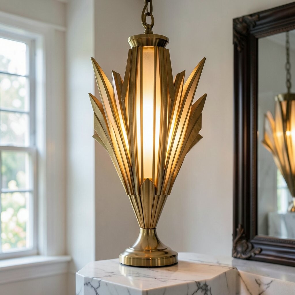 Metallics are a key component of Art Deco lighting. They add shine and a touch of glamour to any room.