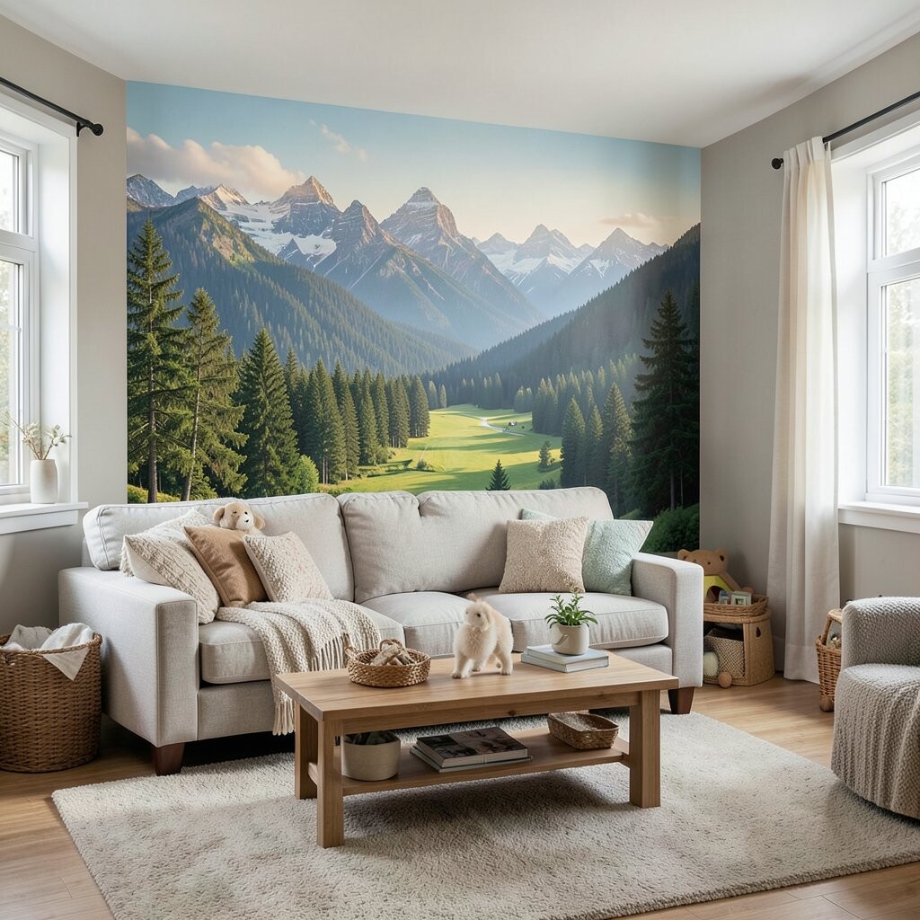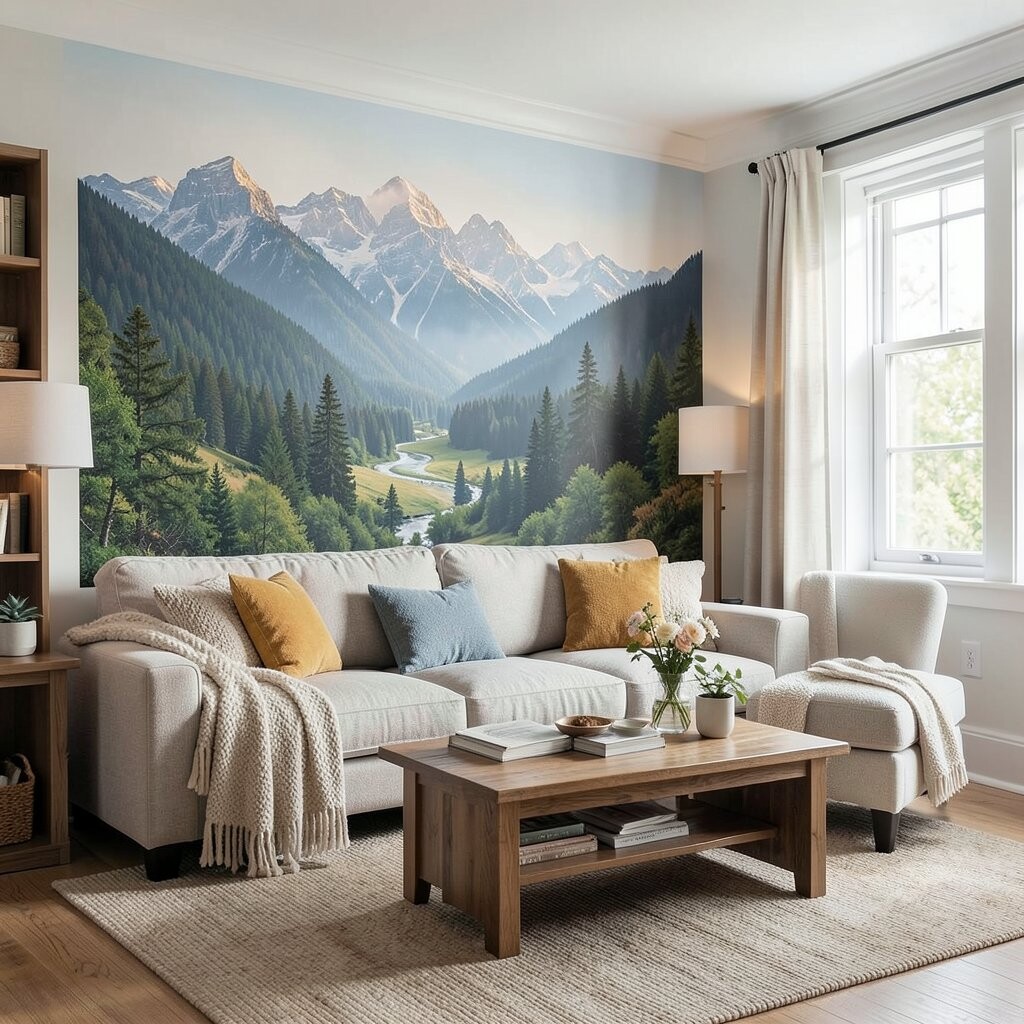 A mountain mural can be the centerpiece of your living room. It adds depth and interest to your main gathering space.