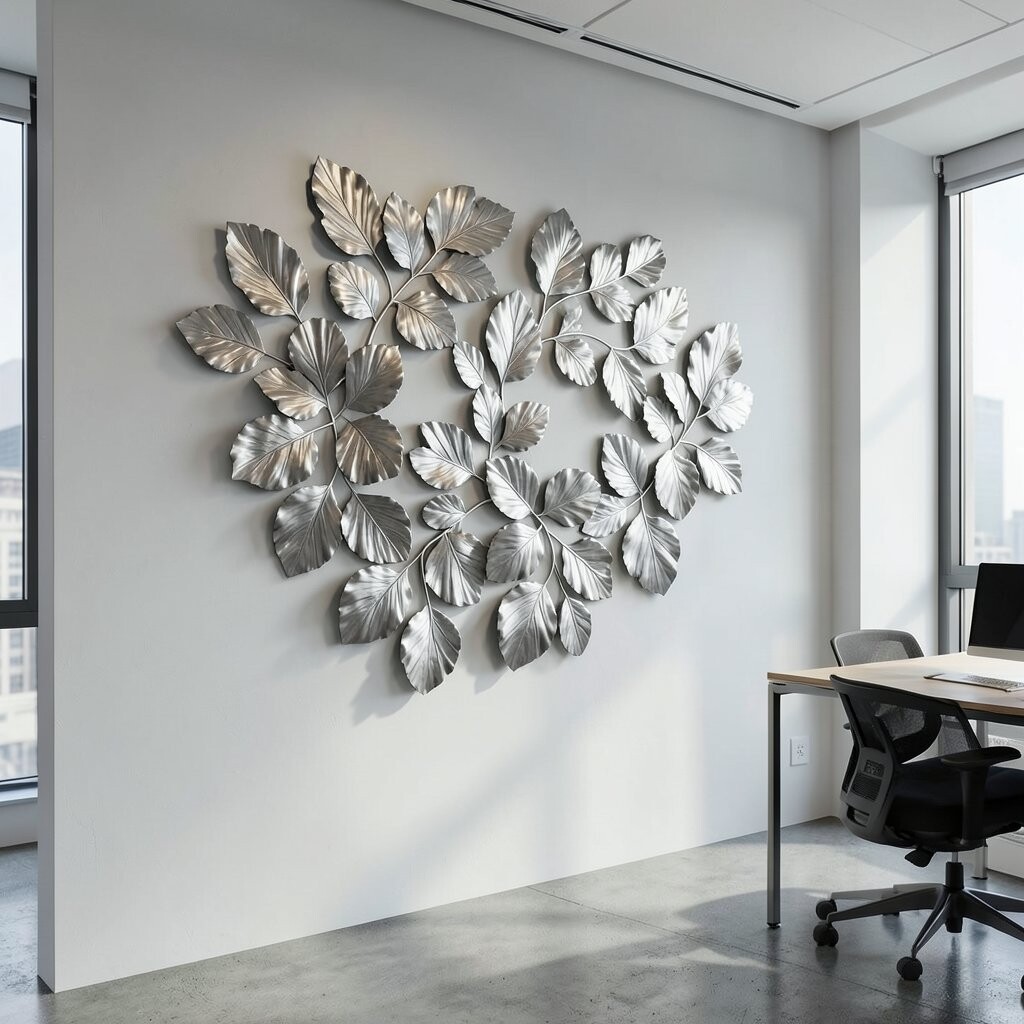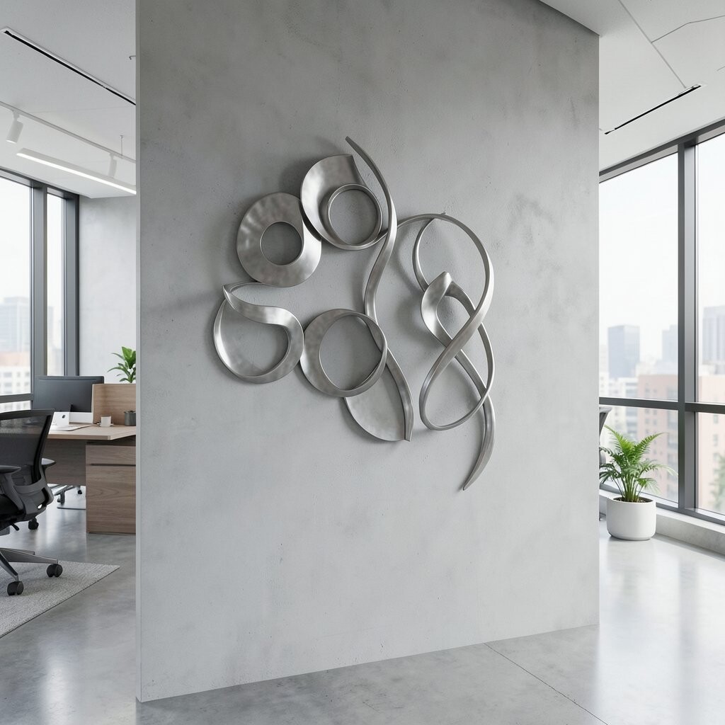 Metallic wave sculptures add a sense of movement and flow. They bring a dynamic element to your office walls.
