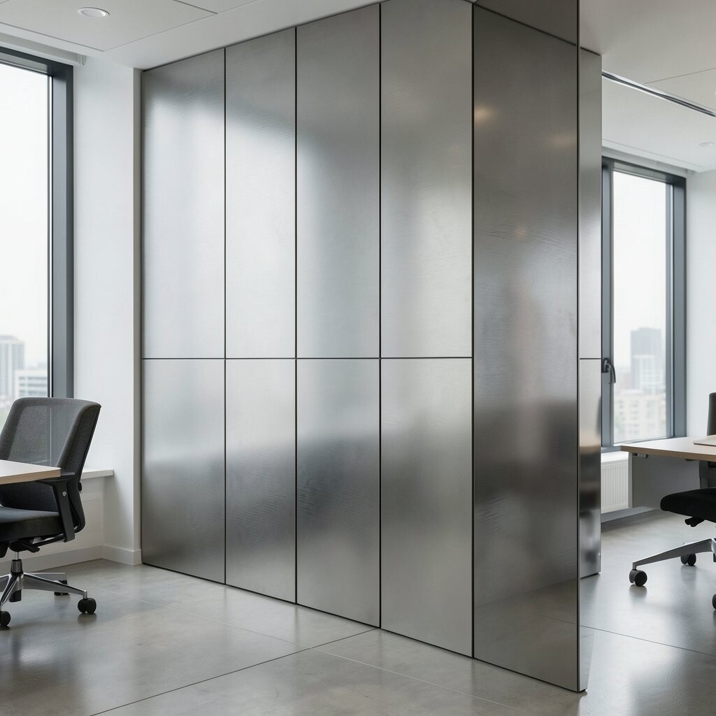 Metal wall panels can transform an ordinary wall into a focal point. They add texture and dimension to your office.