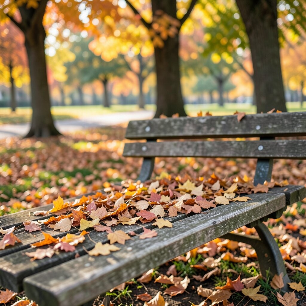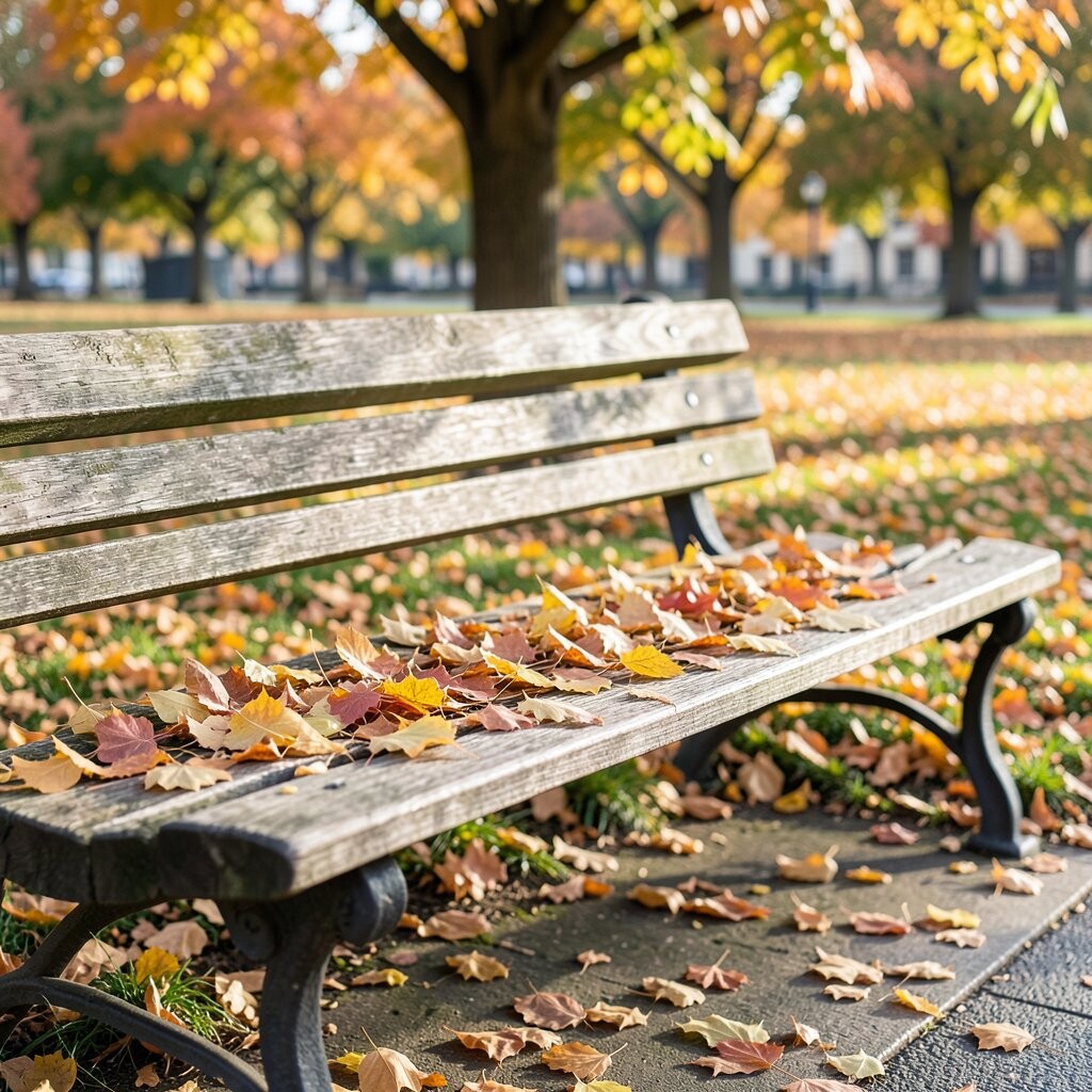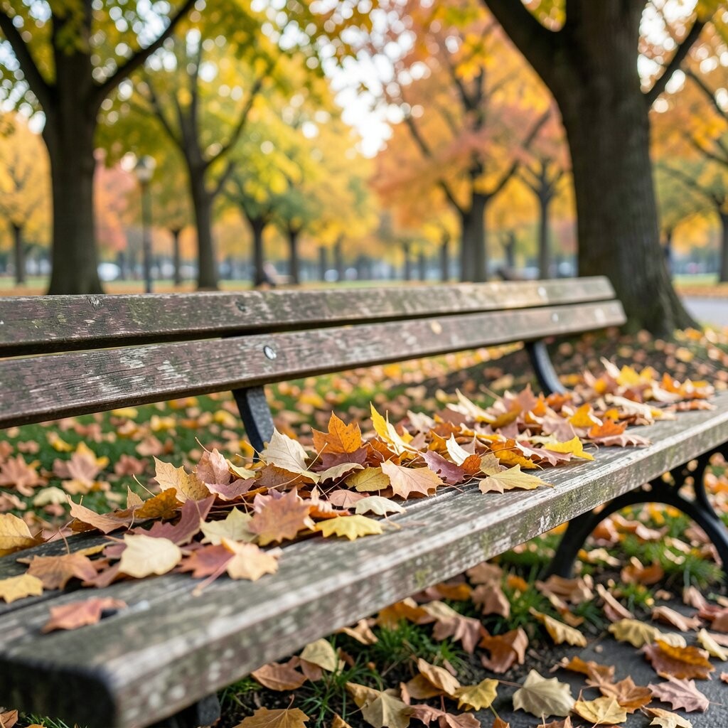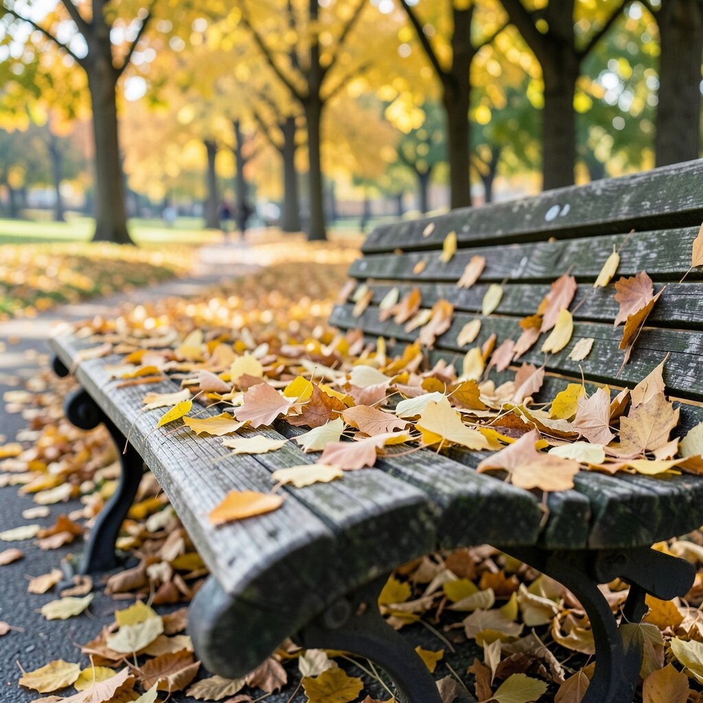 Ginkgo leaves are truly unique with their fan-like shape and bright yellow color. They bring an exotic flair to any park bench.
