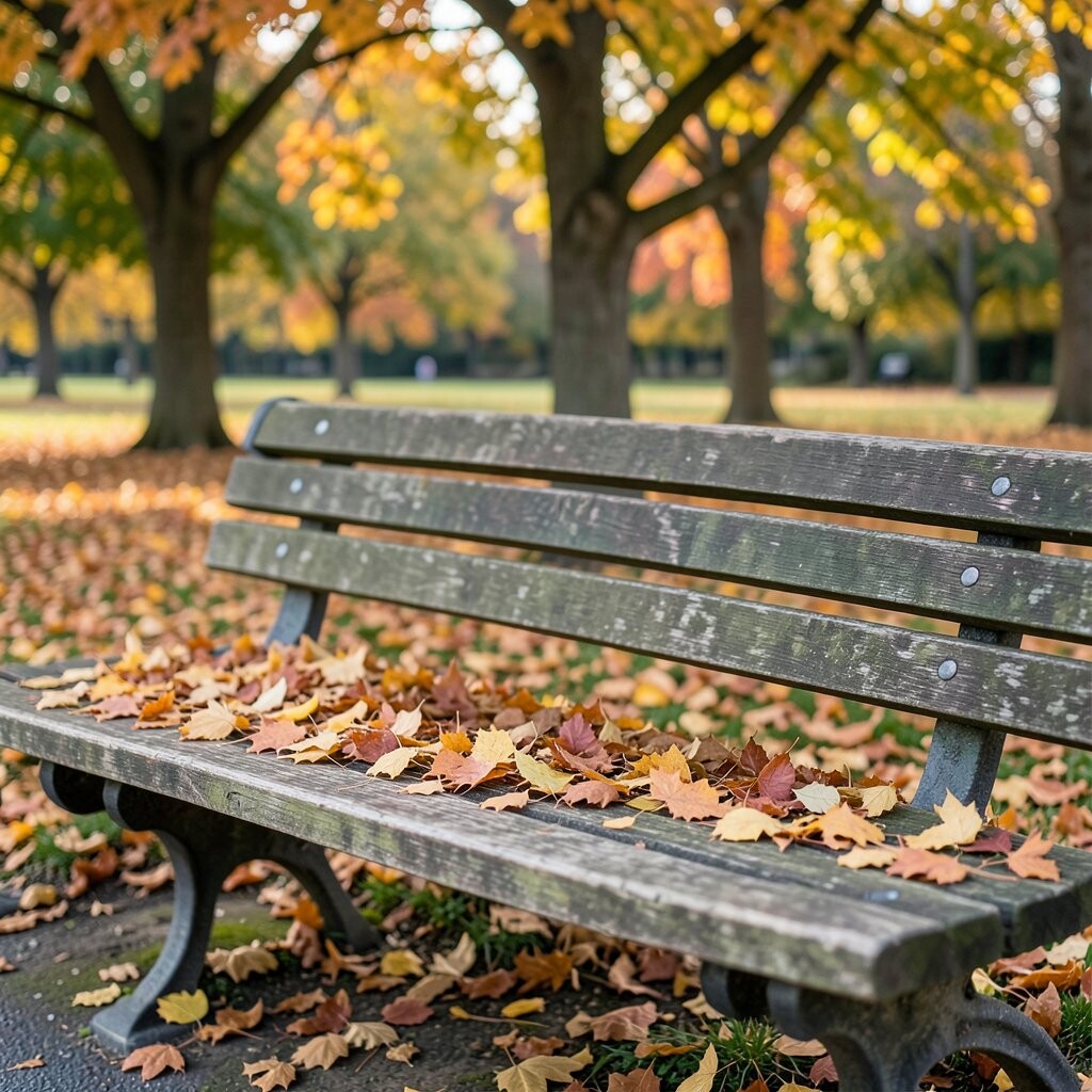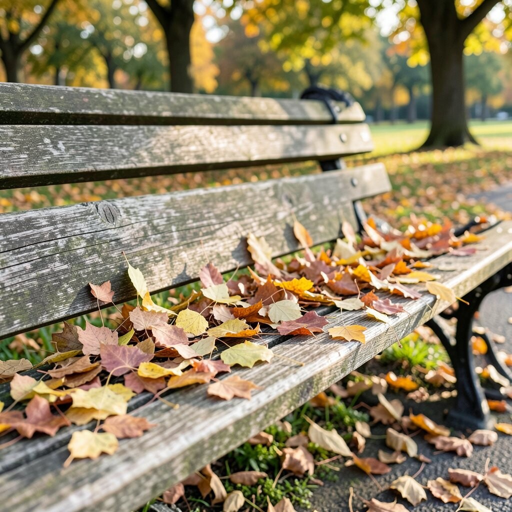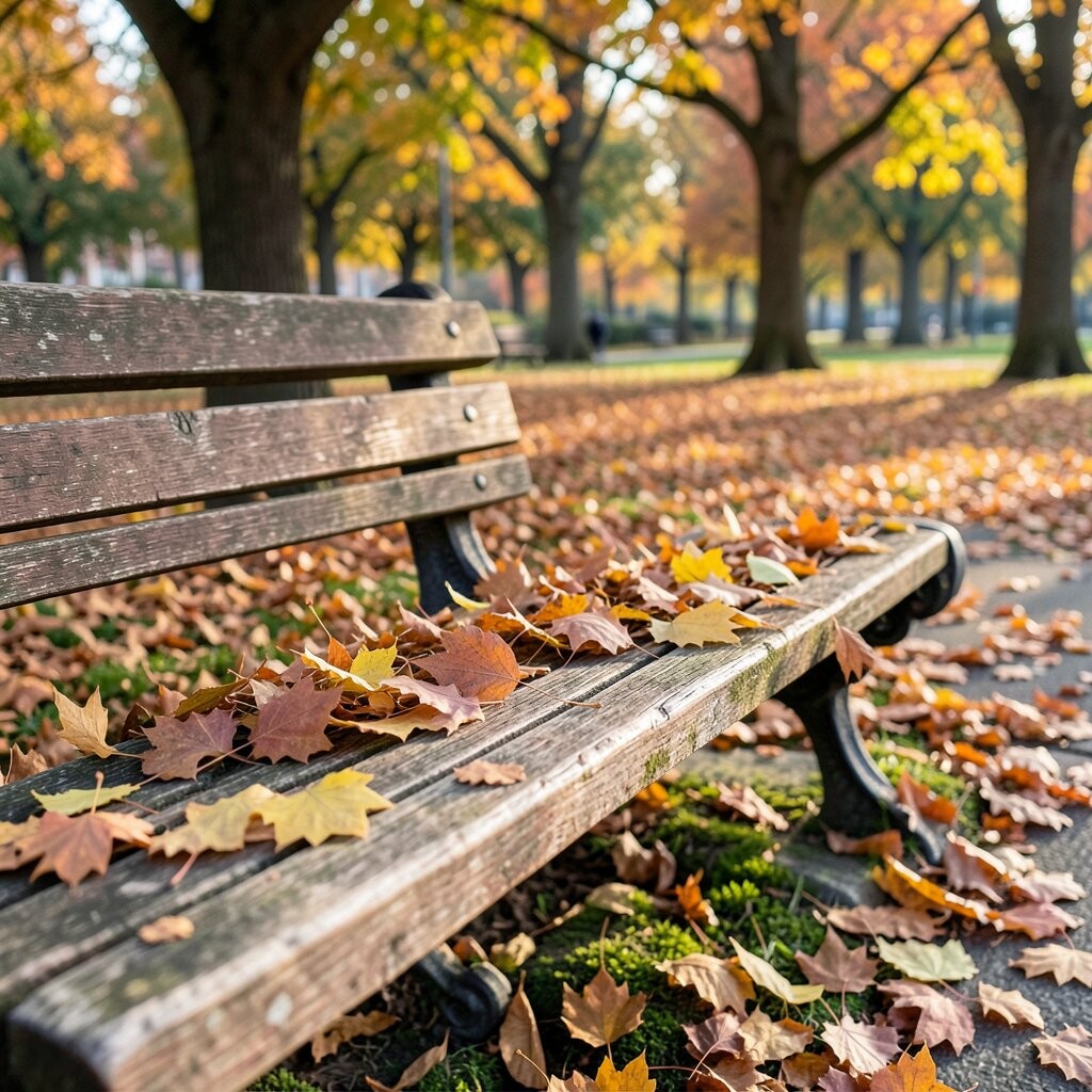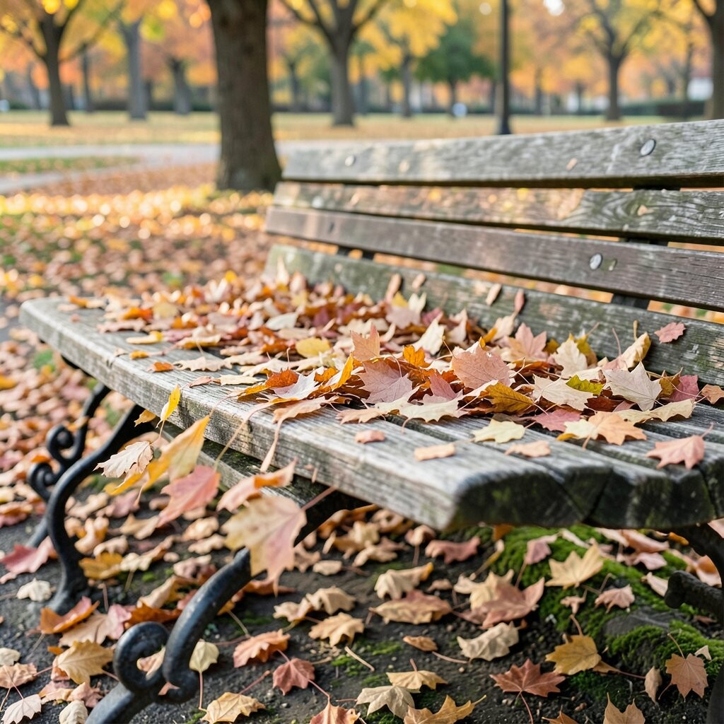 Ginkgo leaves are truly unique with their fan-like shape and bright yellow color. They bring an exotic flair to any park bench.