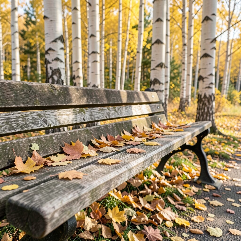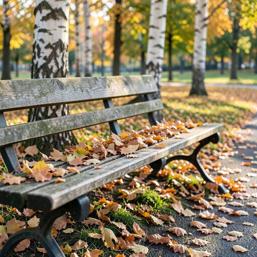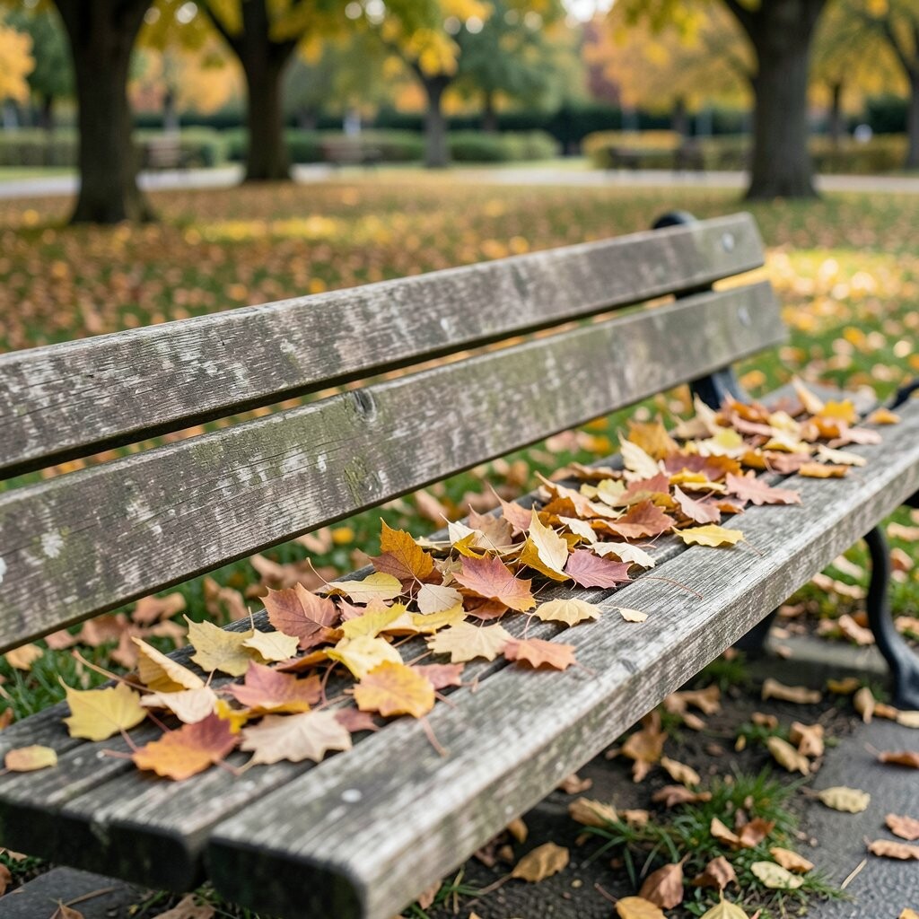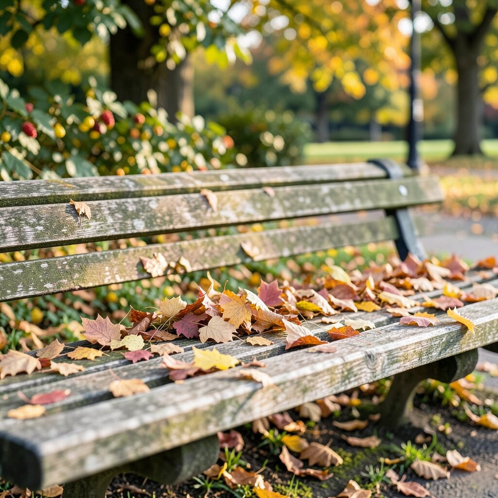 Ginkgo leaves are truly unique with their fan-like shape and bright yellow color. They bring an exotic flair to any park bench.