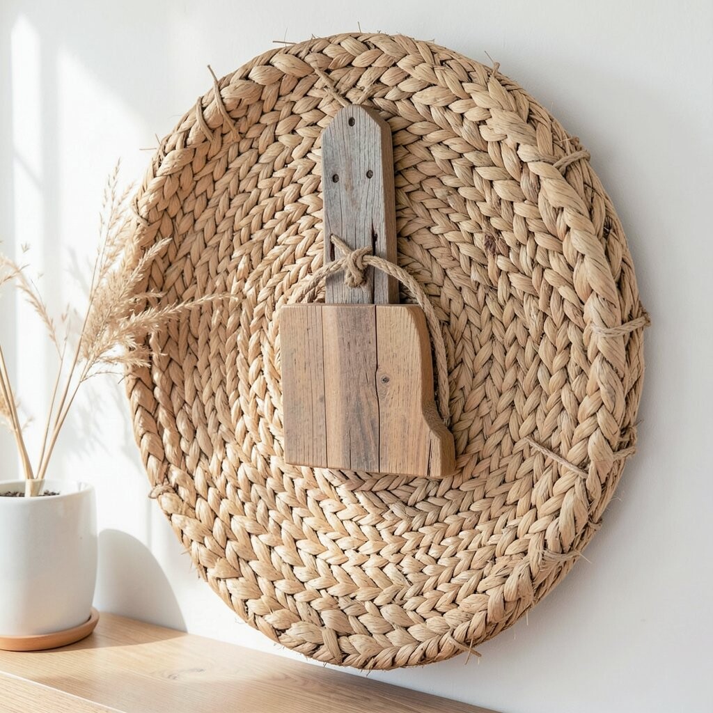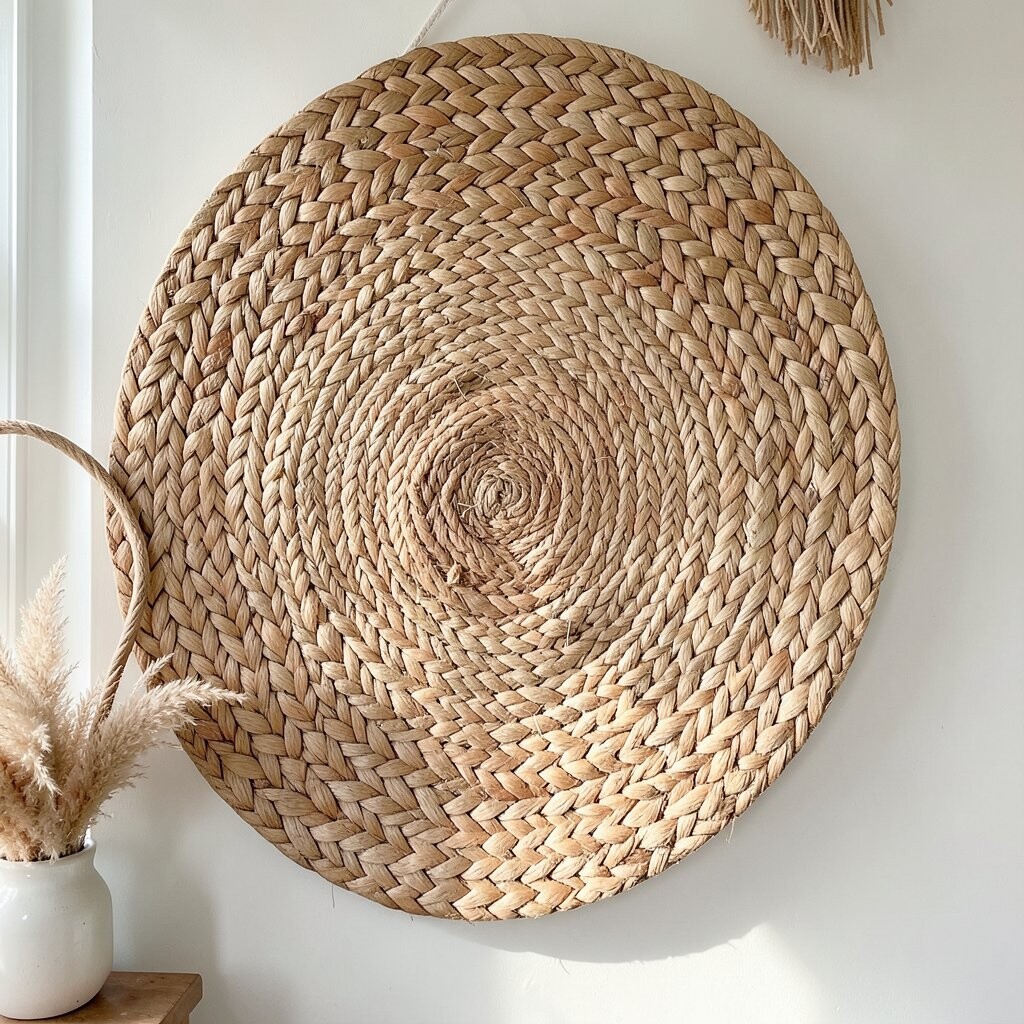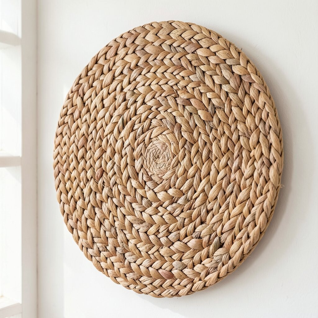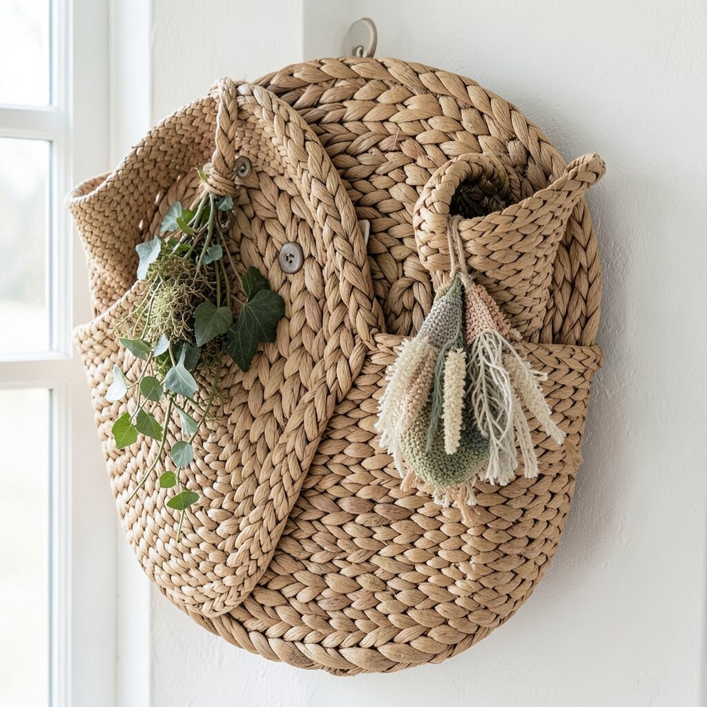 Straw baskets with intricate patterns can serve as standalone art pieces. Look for baskets with natural dyes and geometric designs.