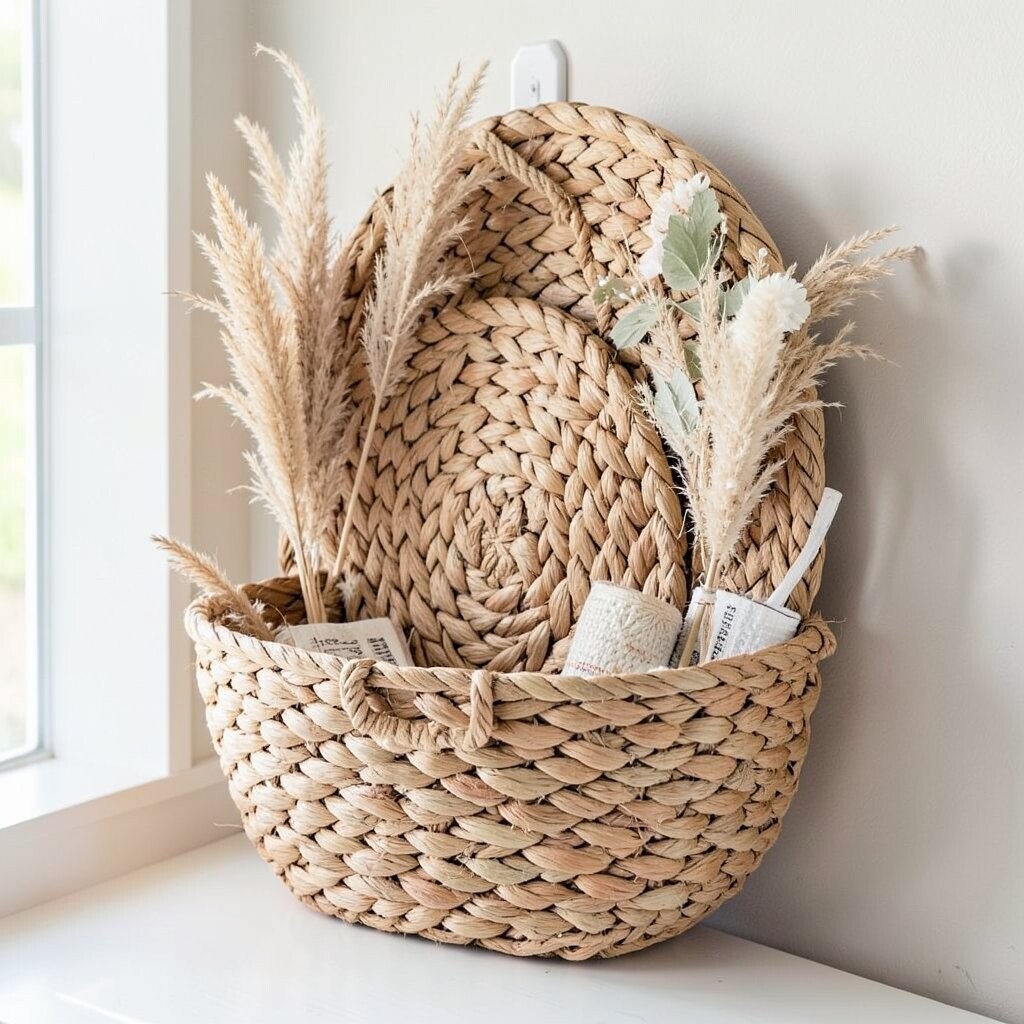 Change your decor with the seasons by swapping out straw baskets. They offer a flexible and cost-effective way to refresh your space.