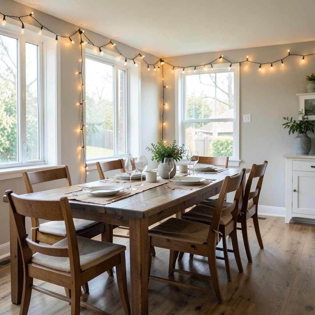 Icicle String Lights bring a touch of winter wonderland to your dining area. These lights dangle like icicles, creating a frosty, enchanting look.