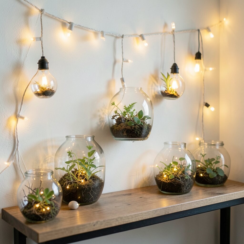 Place string lights in a terrarium for a magical indoor garden. It’s a unique way to bring a little nature indoors.