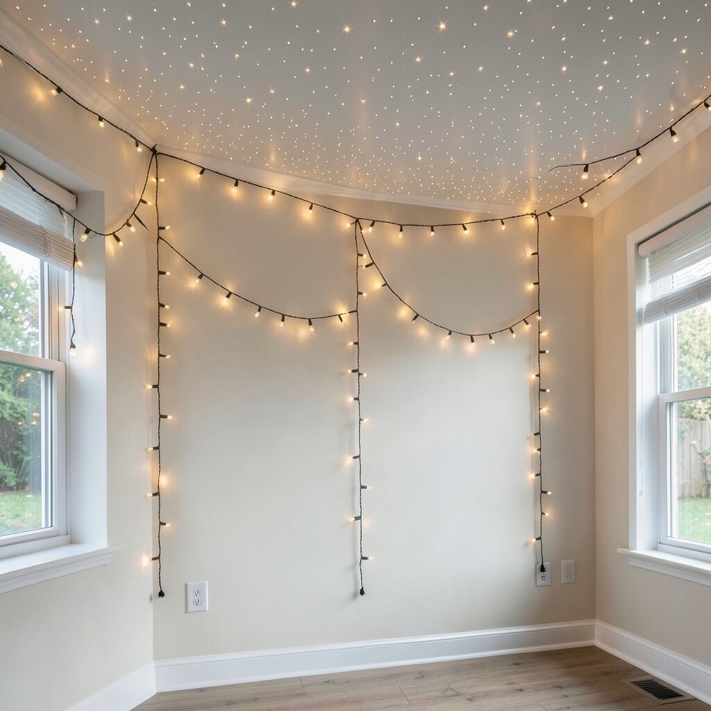 Use tiny LED lights that twinkle gently. They’re perfect for creating that dreamy starry night feel.