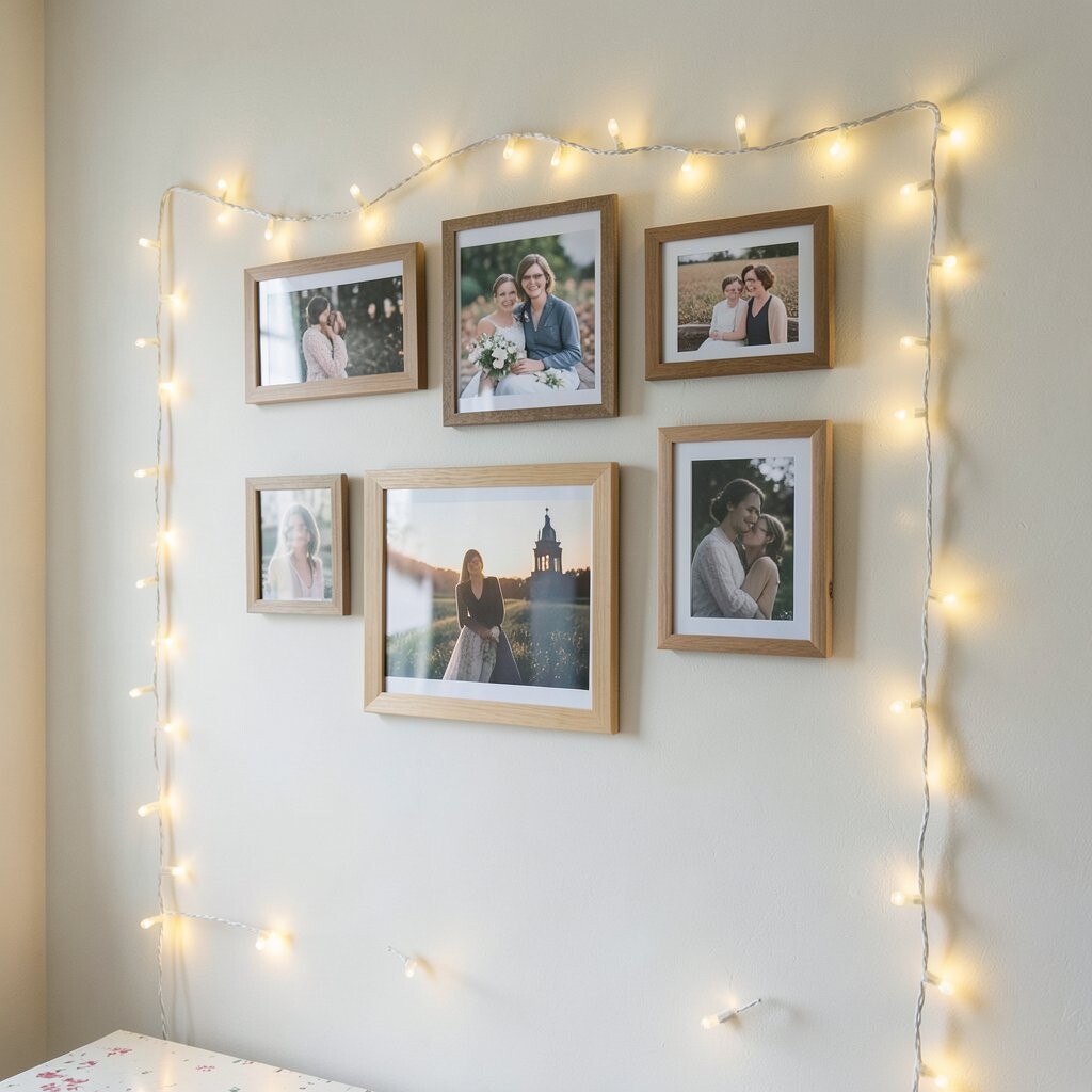 Cost-effective and easy to set up, this idea is a fan favorite. You’ll only need some clips and your cherished photos.