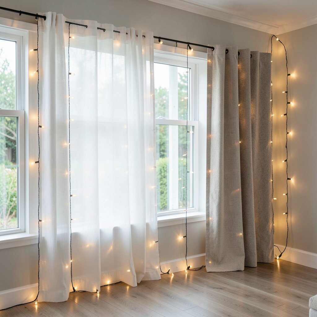 Try layering with sheer fabric for added texture. It softens the lights and adds elegance.