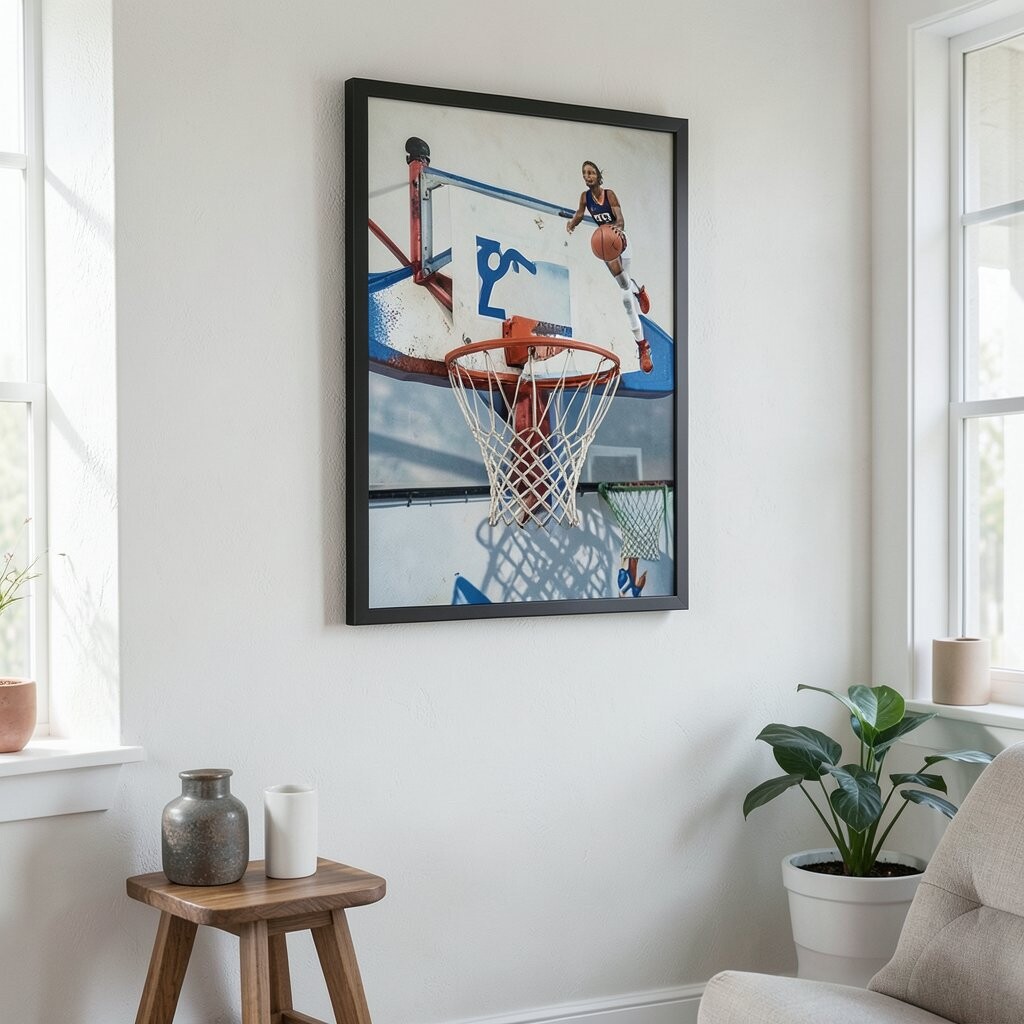 Print photos in black and white for a vintage look. You can change the photos anytime for a fresh feel.