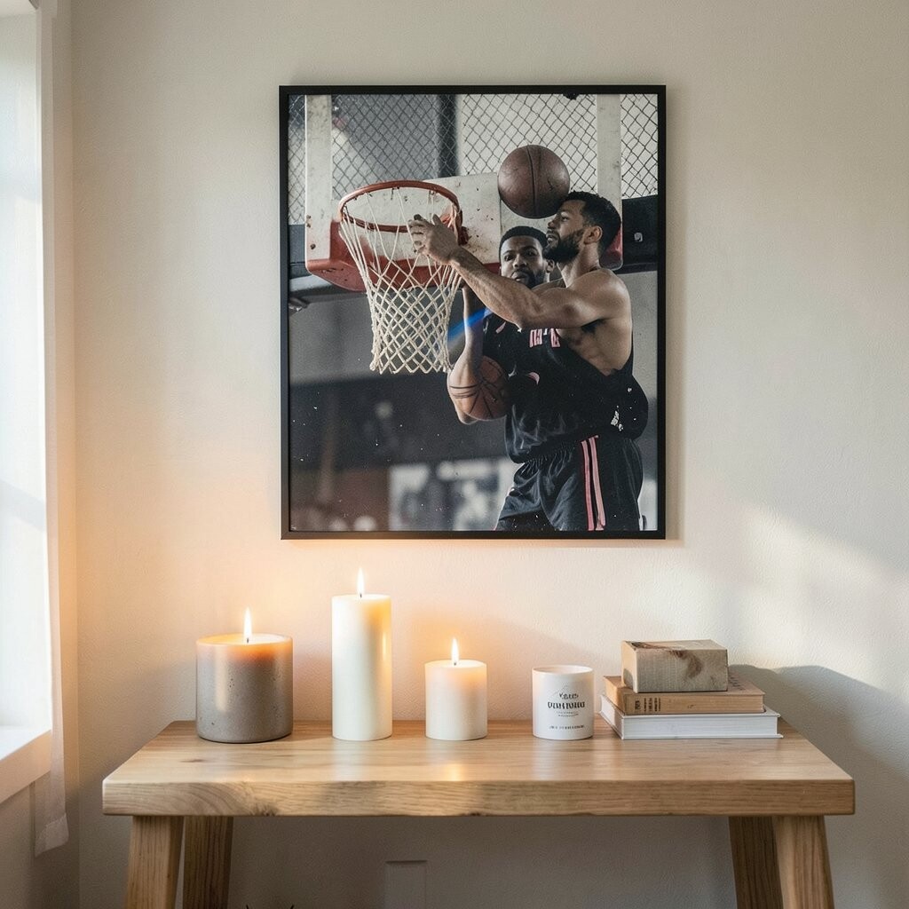 This setup turns simple photos into a stunning focal point. It adds a personal touch to your decor.