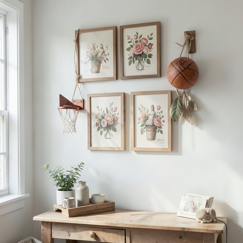 Try using faux flowers for a long-lasting display. It’s a cost-effective way to keep your wall looking fresh year-round.