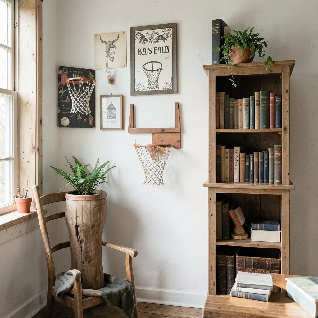 Create a mini bookshelf using a tobacco basket. It’s a charming way to display your favorite reads.