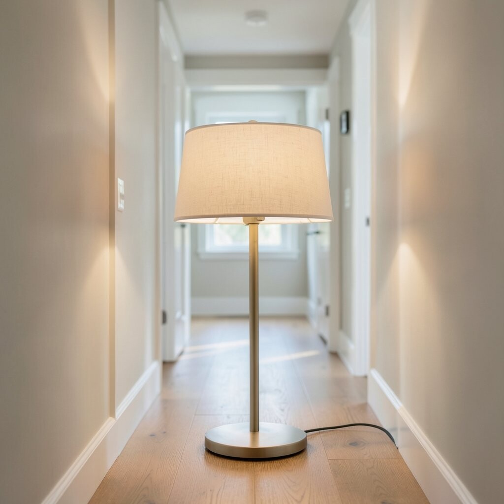A table lamp in your hallway can highlight architectural features. It adds depth and creates a welcoming path.