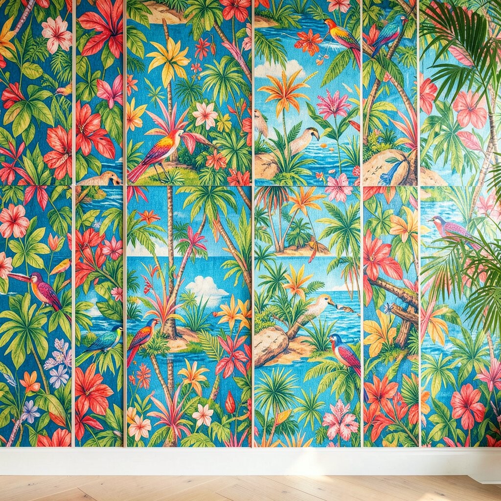 Tropical patterns can turn your home into a sunny getaway. Imagine palm leaves, bright flowers, and vibrant birds greeting you every day.