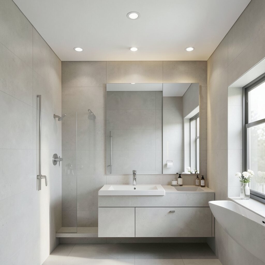 Recessed lighting adds a touch of elegance to bathrooms. It helps create a spa-like atmosphere.