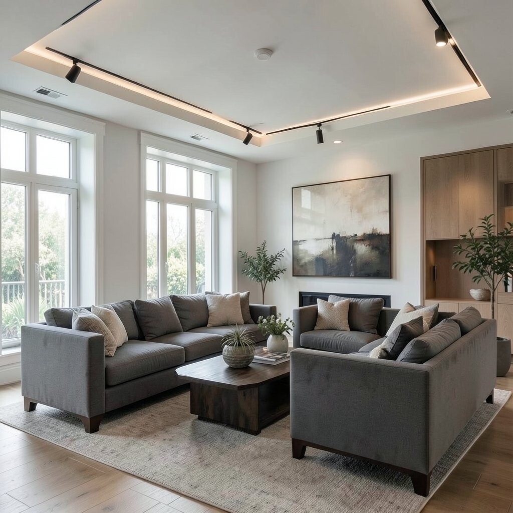 Recessed lighting adds understated elegance to living areas. It provides a soft, even glow that’s welcoming.