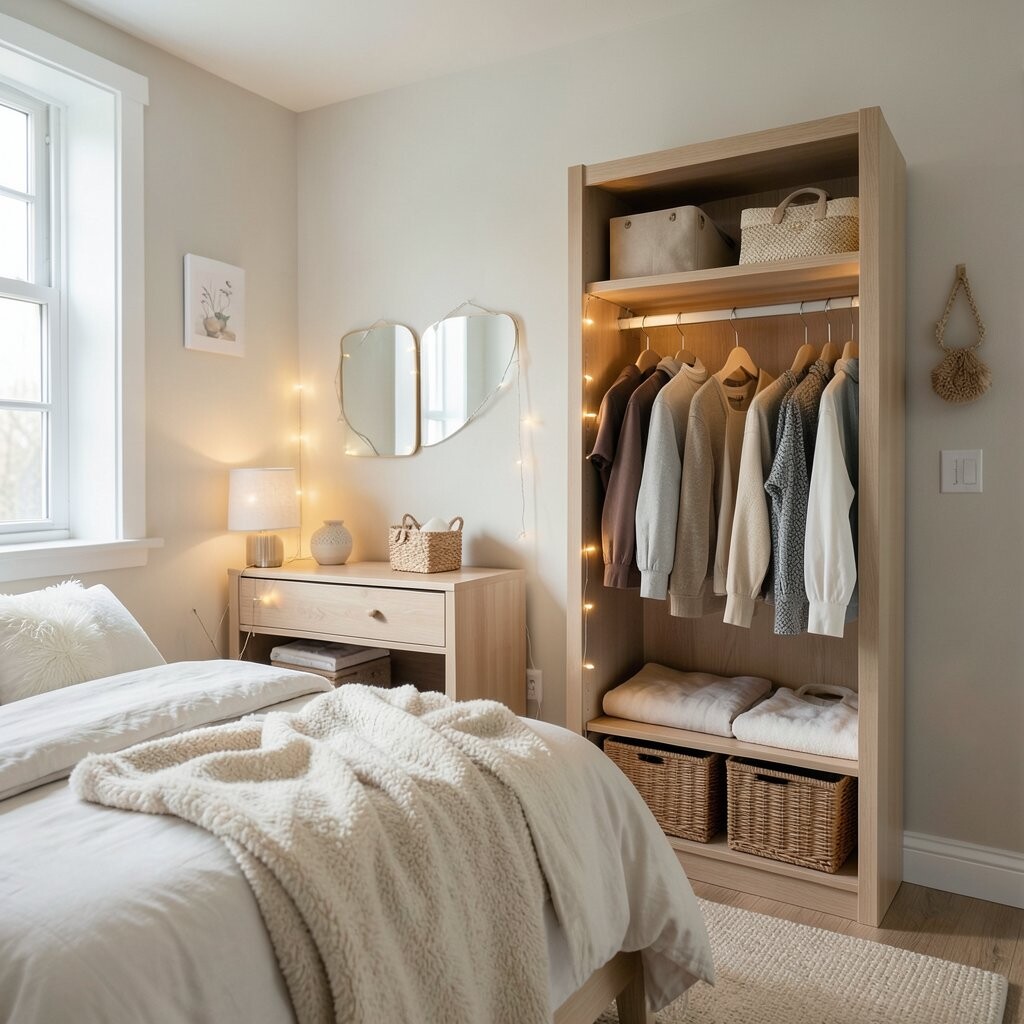 This setup turns a mundane space into something special. It’s perfect for showcasing your favorite clothes and accessories.