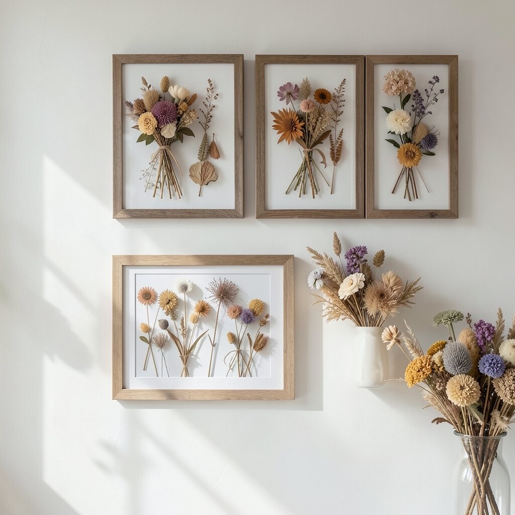 A dried flower collage is like a scrapbook for your wall. Each flower tells its own story, creating a beautiful tapestry of memories.