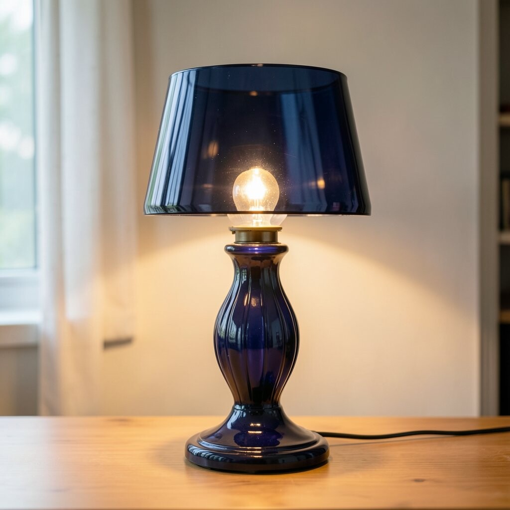 This lamp is as captivating as the night sky. Its deep blue glass base is bold and enchanting.