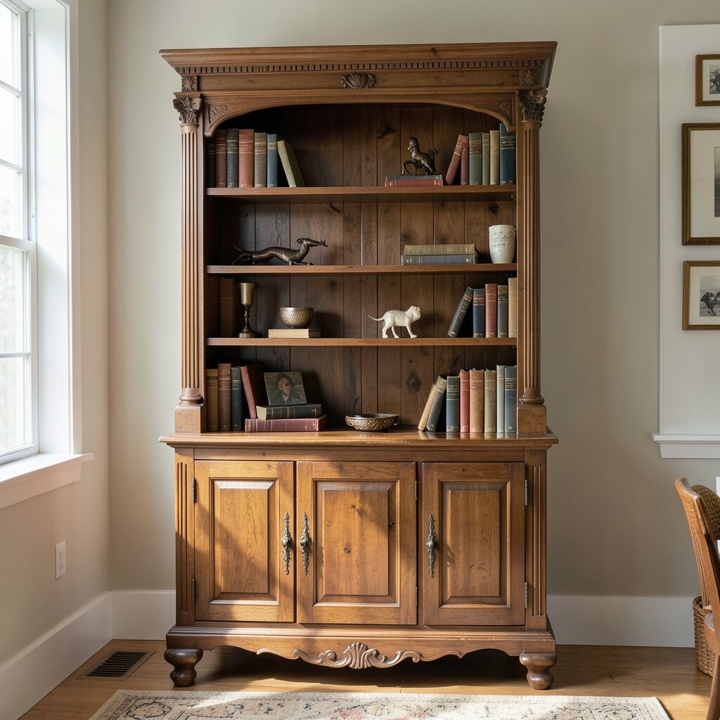 A colonial style bookshelf is both functional and decorative. Its classic design and sturdy construction make it a great addition to any room.