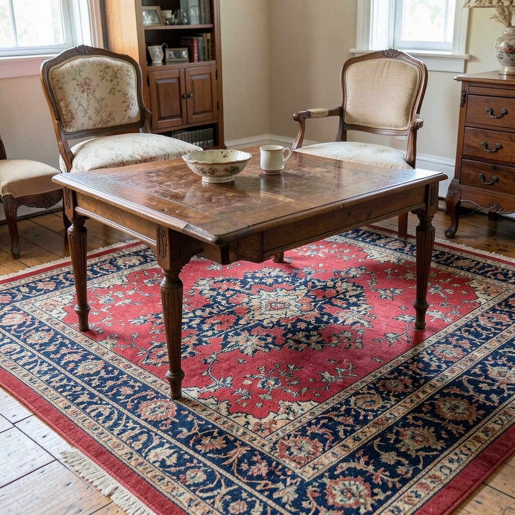 A traditional oriental rug is a beautiful way to add warmth and color to your home. Its intricate patterns and rich colors make it a work of art for your floor.