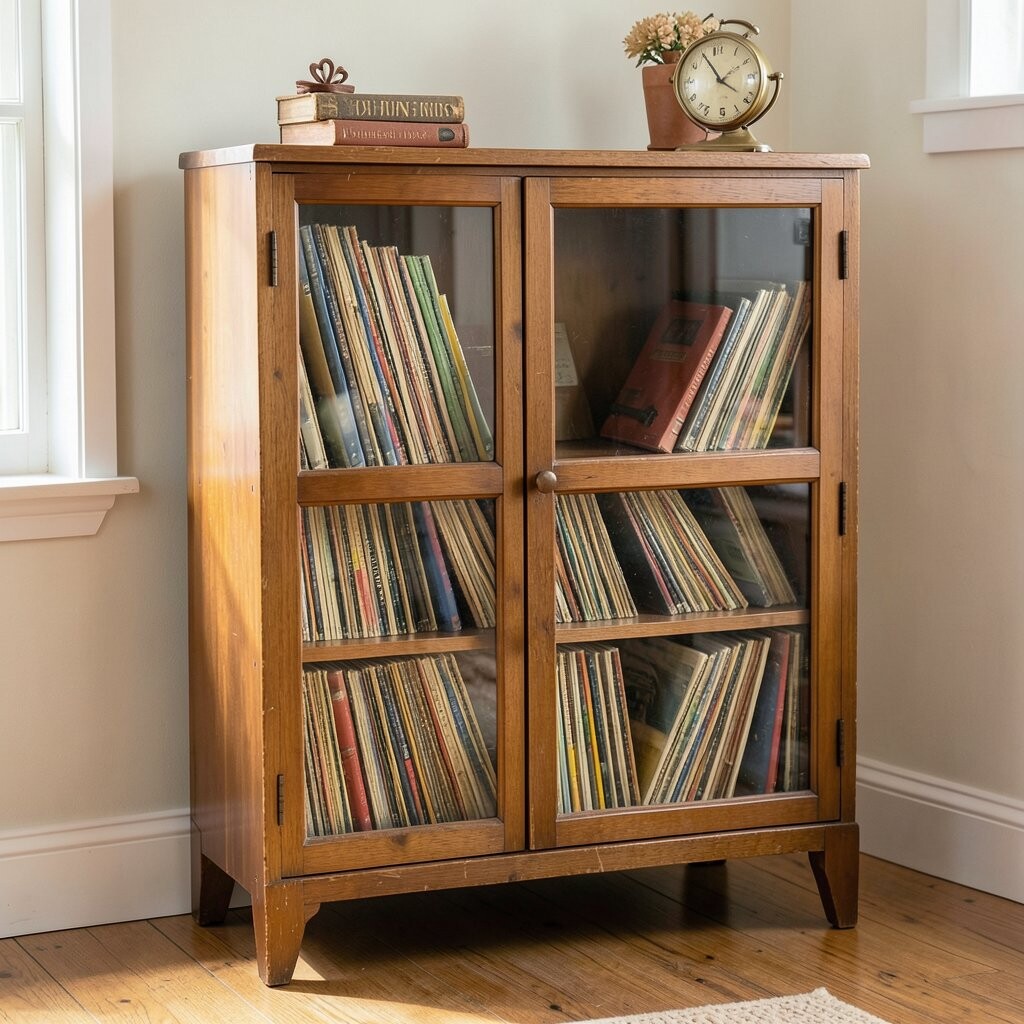 A retro vinyl record cabinet is a must-have for music lovers. Its vintage design provides a stylish way to store and display your record collection.
